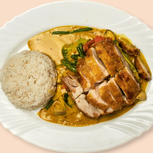 Hähnchenschenkel mit Gemüse & rotem Thai Curry (scharf)