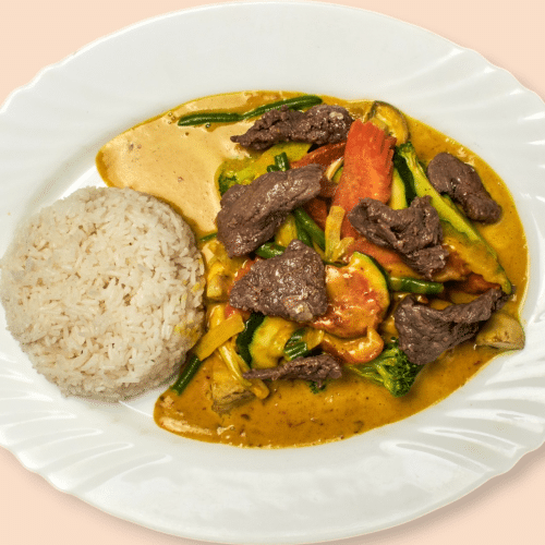 Gemüse mit rotem Thai Curry (Rindfleisch, scharf)
